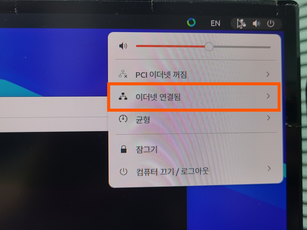 이더넷 연결됨 표시로 변경되었습니다. PCI 이더넷(유선랜)은 꺼짐 설정했습니다.