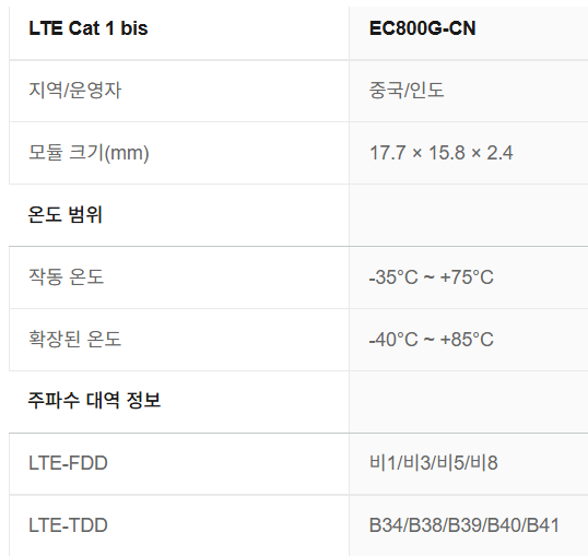 최대 10Mbps의 다운로드 속도와 최대 5Mbps의 업로드 속도를 지원하며, 기존 LTE, LTE CATM1 제품군에 비해 저렴한 가격으로 공급되어 요즘 인기가 많은 제품입니다.- M2M 및 IoT 애플리케이션을 위해 설계된 LTE Cat 1 bis 무선 통신 모듈