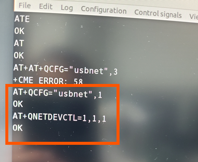 AT+QCFG="usbnet", 3 //3일 경우 RNDIS 모드 설정, 1일 경우 ECM모드 설정