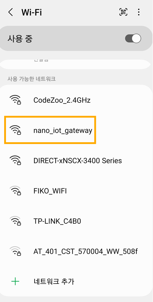 스마트폰으로 검색해 보면 아래와 같이 nano_iot_gateway를 확인할 수 있습니다.