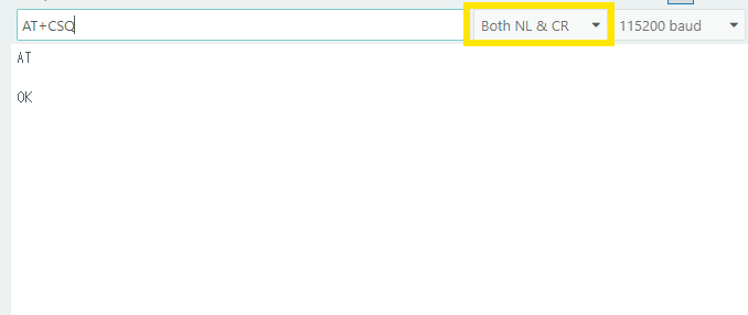 아래와 같이 Serial Monitor를 설정 후 AT+CSQ 명령으로 신호 감도를 테스트 할 수 있습니다.