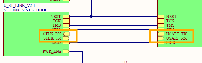 USART_TX는 ST-LINK_RX에 USART_RX는 ST-LINK_TX에 연결되어 있는것도 확인할 수 있습니다.