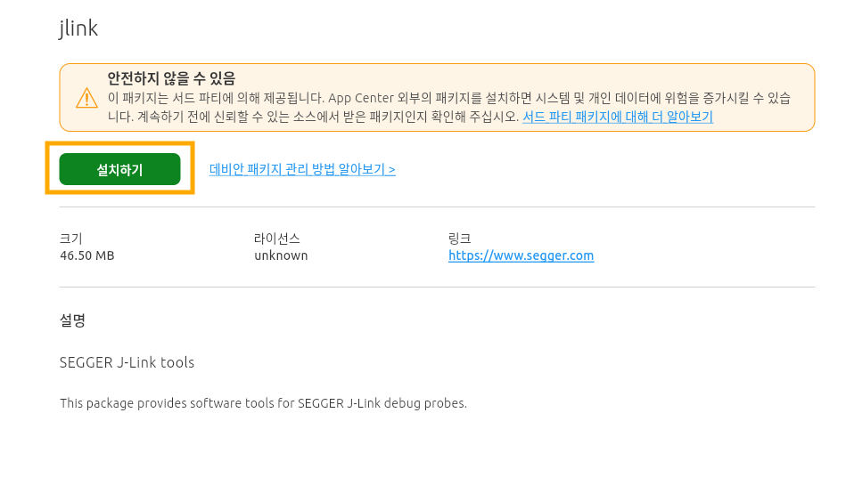 여기에 펌웨어 업로드, 디버깅을 위해 JLink 소프트웨어 패키지를 설치했습니다.