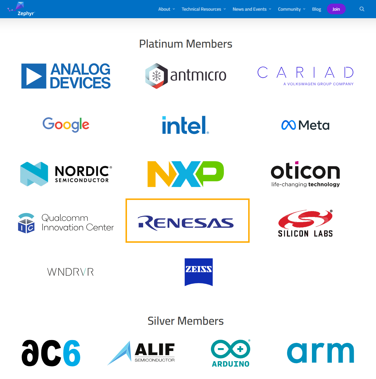 Renesas는 Zephyr Project에 활발히 참여하고 있습니다. 그리고 무려 플래티넘 멤버입니다. (멤버등급 최상단에 있습니다.)