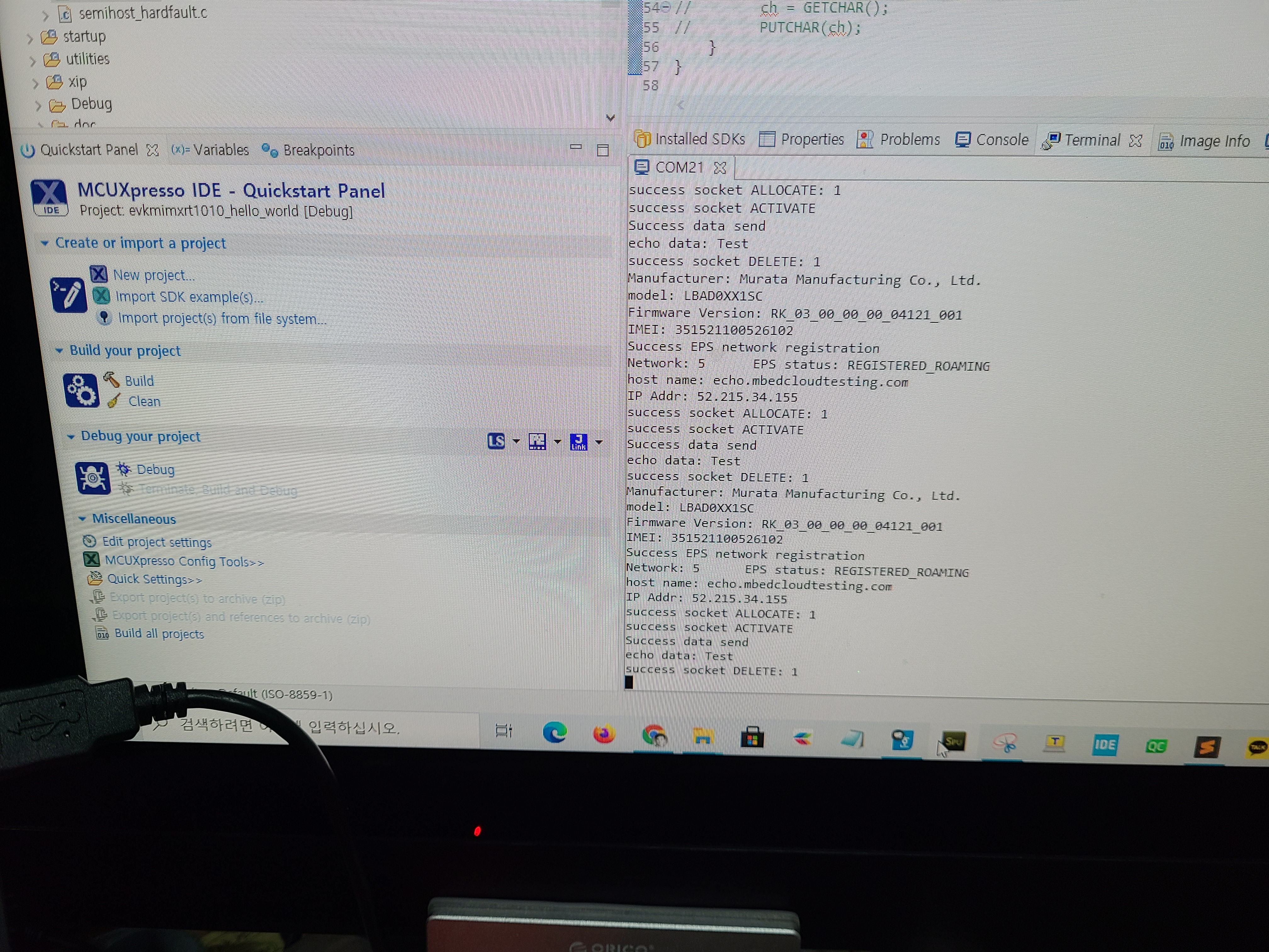 NXP I.MX RT1010 EVK보드에 모뎀 상용라이브러리 포팅 완료했습니다.