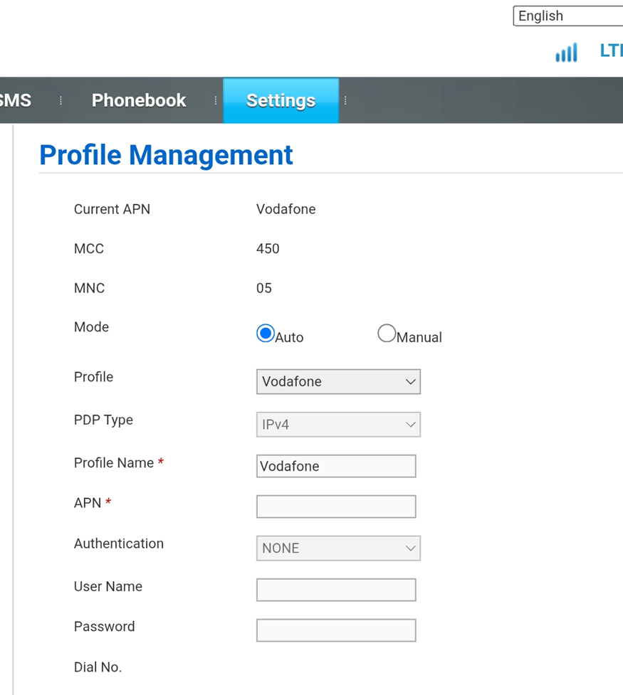 여기서는 vodafone IoT와 관련된 설정만 다루도록 하겠습니다.