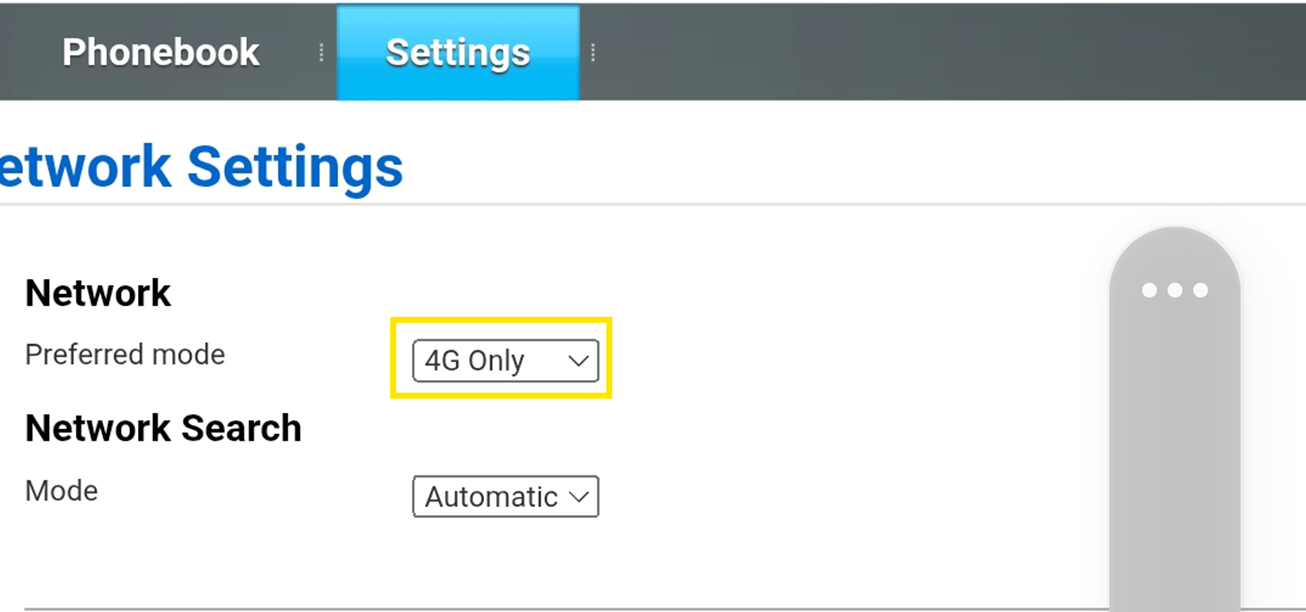 Network Settings를 선택하고 Preferred mode를 4G Only로 선택합니다.