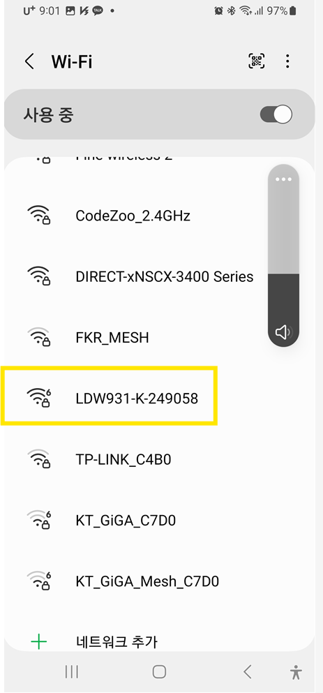 아래와 같이 LW931-K-XXXXXX 이름의 AP를 찾을 수 있습니다. 선택합니다.