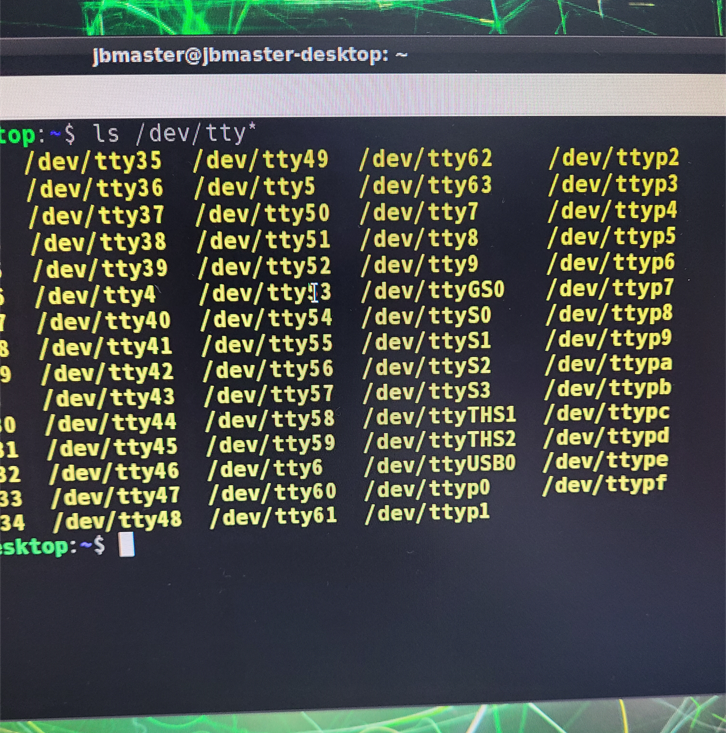 2) 터미널을 열어서 USB-TTL이 잘 인식되었는지 확인합니다. 해당 보드에서는 /dev/ttyUSB0로 인식되었습니다.