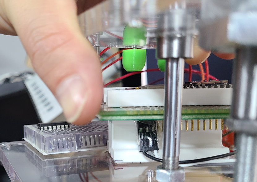 1차 생산에서 사용했던 지그(자체제작) 위와 같은 방식의 테스트 지그의 경우 제품 탈부착에 어려움이 있고 장시간 사용 시 CATM1 내장형 모뎀과