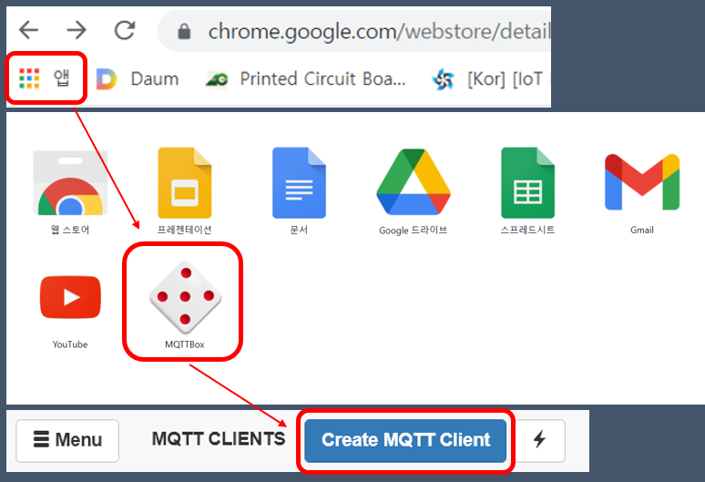 위해 크롬 확장 프로그램 설치합니다.MQTTBox 프로그램을 설치합니다.