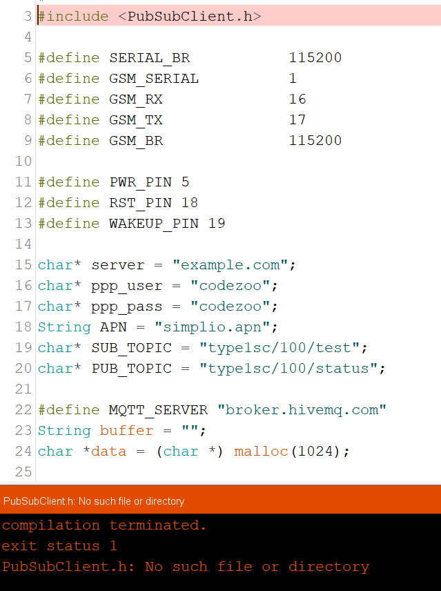라이브러리가 추가되었습니다 4. 예제를 실행합니다. 예제 -> PPPOSClient -> type1sc_simple_pppos_with_mqtt