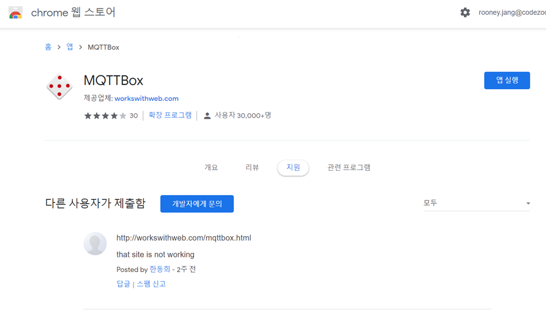 https://chrome.google.com/webstore/detail/mqttbox/kaajoficamnjijhkeomgfljpicifbkaf/support?hl=ko