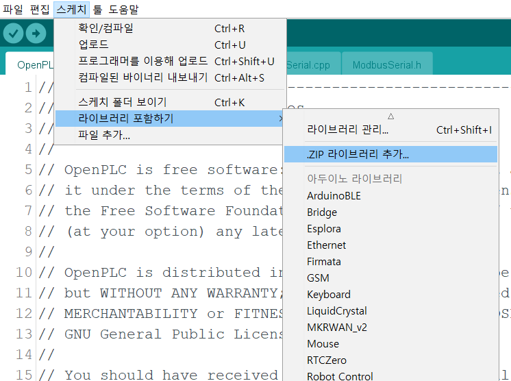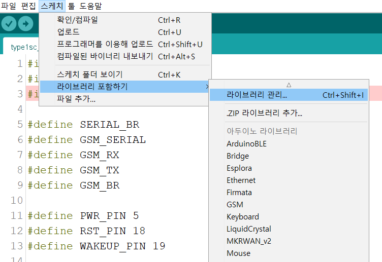 CodeZoo LTE CATM1 내장형모뎀에서 동작할 수 있도록 수정한 라이브러리 및 예제 다운로드 라이브러리를 설치합니다.