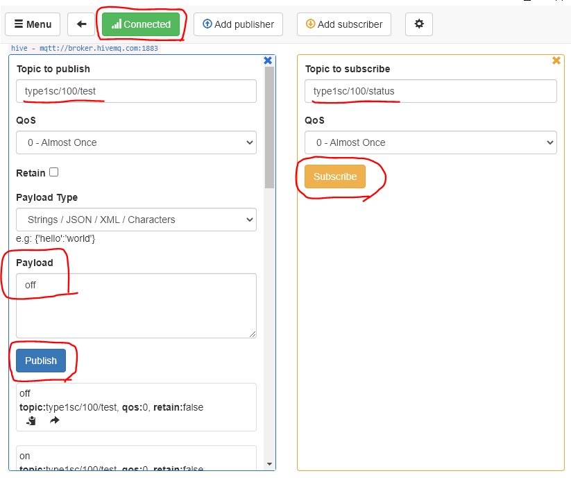 부팅, ppp접속을 통해 IP획득 후 서버 연결 이제 테스트할 broker 환경을 설정하겠습니다. 테스트는 Hivemq broker를 사용했습니다.