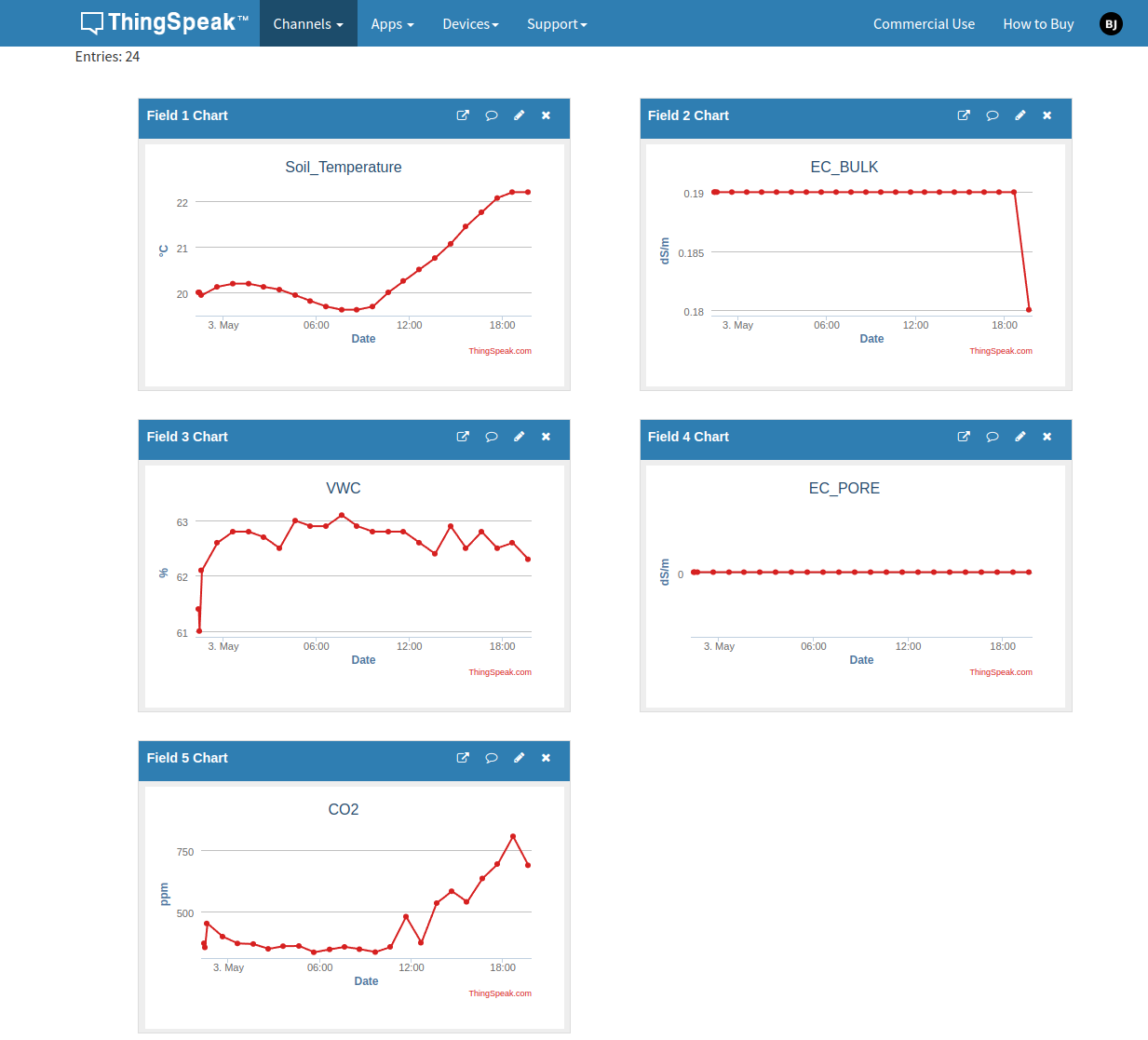 data += "?api_key=" + WApiKey + "&field1=" + String(TEMP,2) + "&field2=" + String(EC_BULK,2) + "&field3=" + String(VWC,2) + "&field4=" + String(EC_PORE,2) + "&field5=" + String(CO2,2);