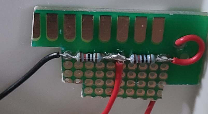이산화탄소 센서의 경우 0~3000 ppm의 값을 0~5V로 표현하기 때문에 3.3V ADC Reference를 가지고 있는 BLE Sense 보드의 경우 표현 범위가 넘어가기 때문에 아래와 같이 분배 저항 작업을 해서 전압을 1/2 값을 출력하도록 설정하였습니다.