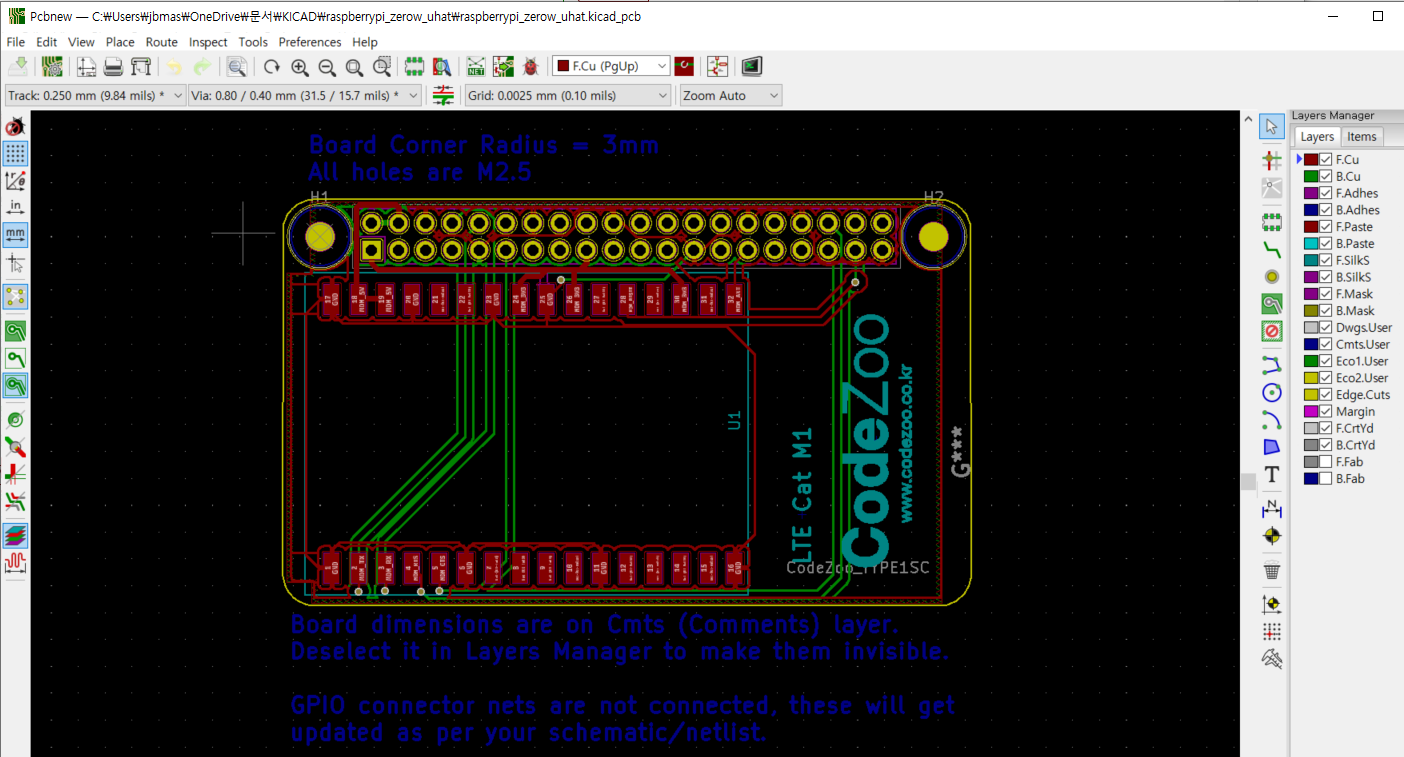 기존 Raspberry Pi 재단에서 배포하는 Raspberry Pi Zero Hat 회로를 based로 해서 제작했고,