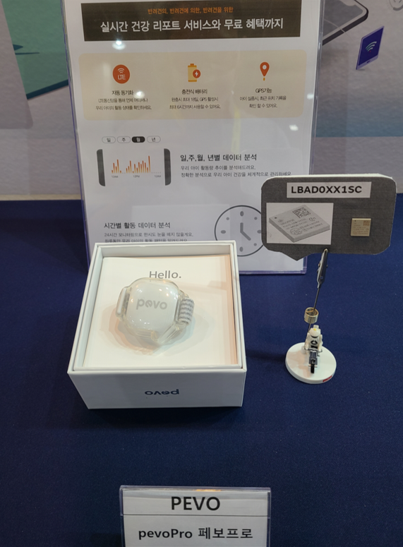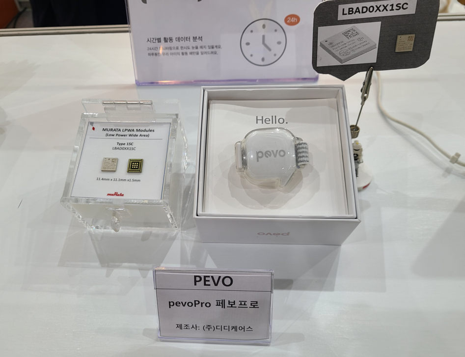 Murata 환경센서 IoT 스마트팜 시스템 AWS 분석사이트 해당 제품 외 LTE CATM1 내장형 모뎀에 사용된 Type1SC 통신모듈을 사용한 반려견 헬스케어 넥밴드인 pevoPro제품도 소개했습니다.