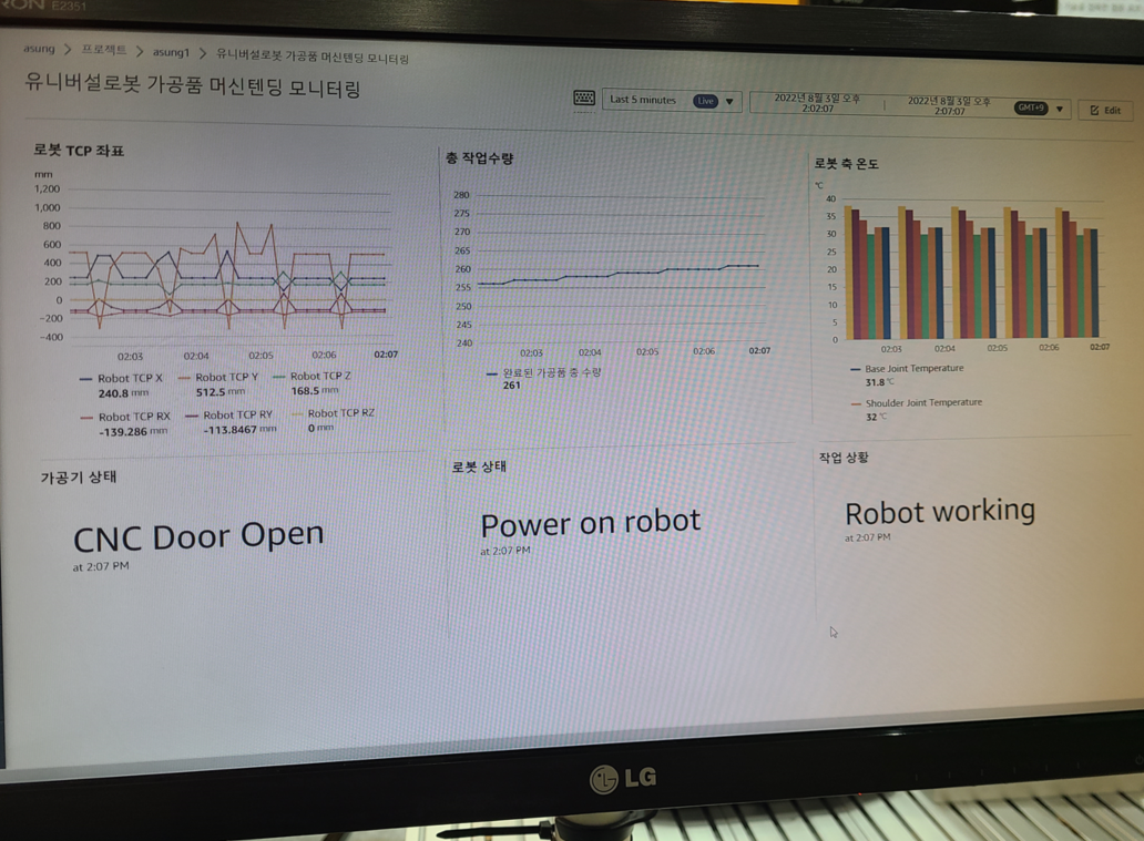 머신텐딩을 위한 비전카메라 협동로봇 머신텐딩 작업 결과는 아래의 AWS IoT SiteWise Portal에서 실시간 확인이 가능합니다.