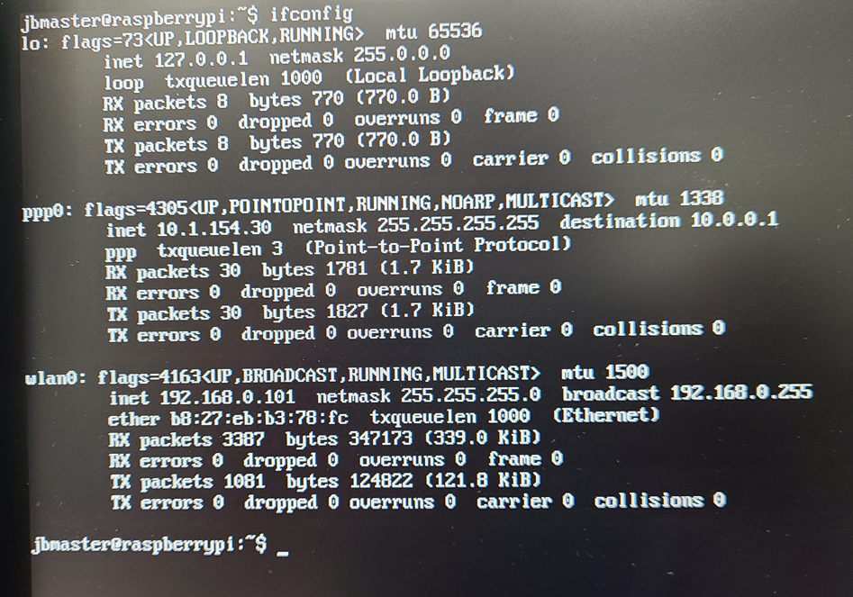 PPP0와 wlan0가 모두 연결되어 있습니다.