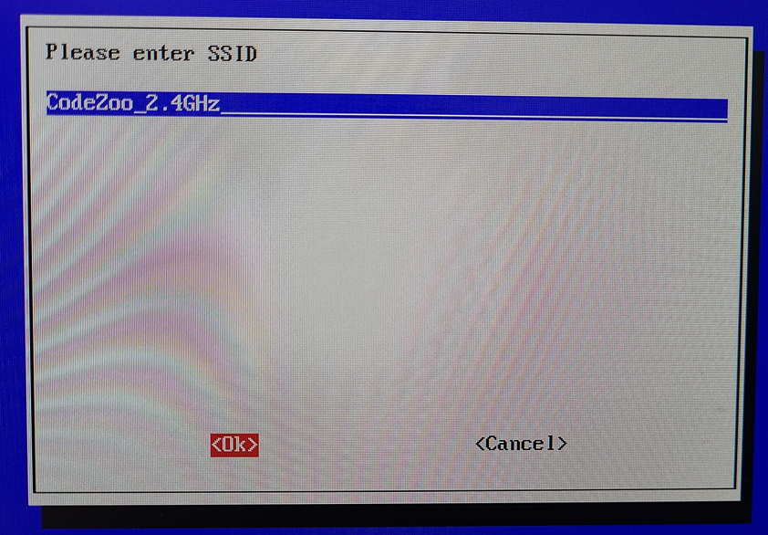 아래 명령어로 설정 프로그램을 호출한 후 아래와 같이 직접 SSID와 PW를 입력해야 합니다.