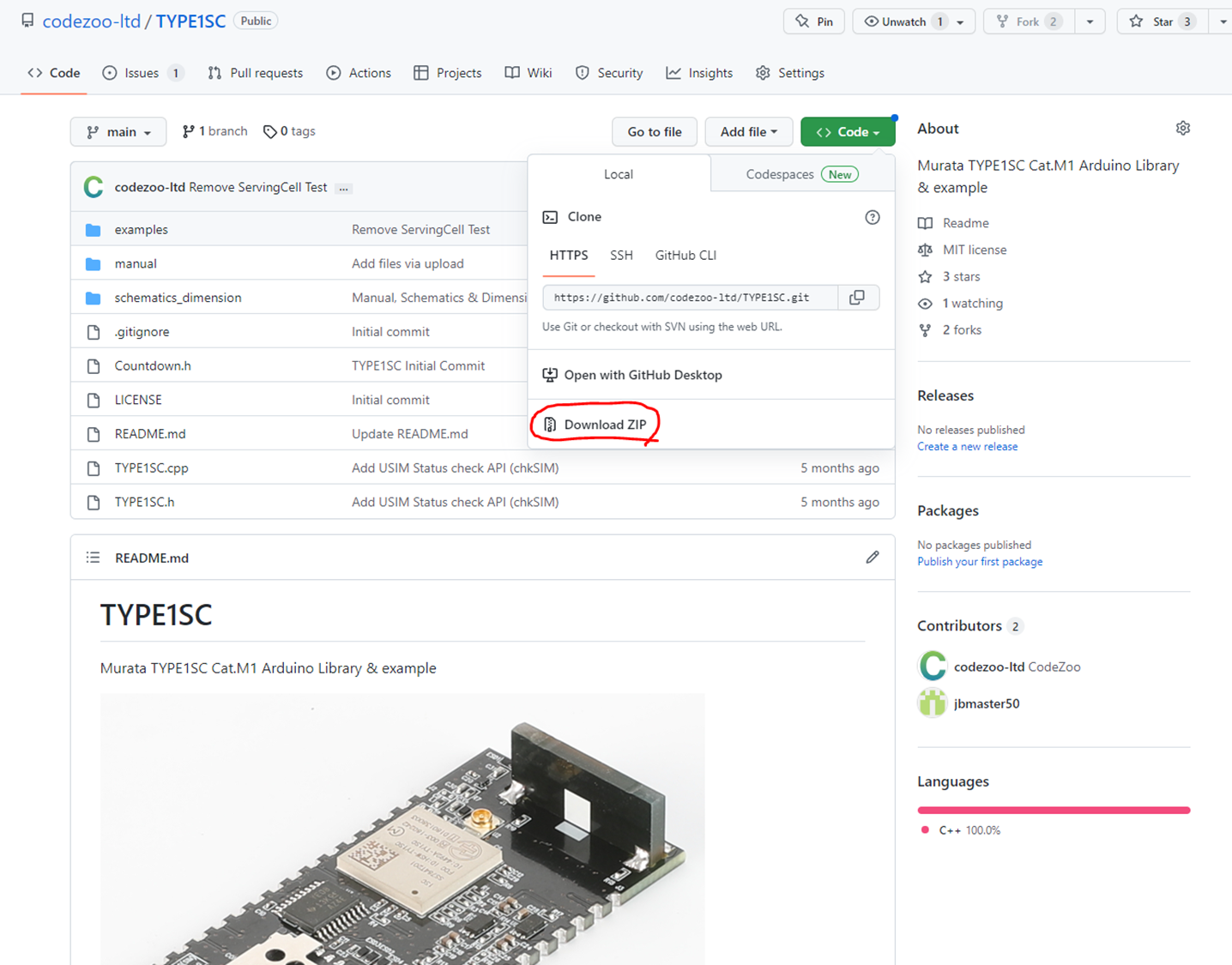 테스트에 사용한 장비들 먼저 LTE CATM1 내장형 모뎀용 아두이노 오픈소스 라이브러리를 다운로드 합니다.