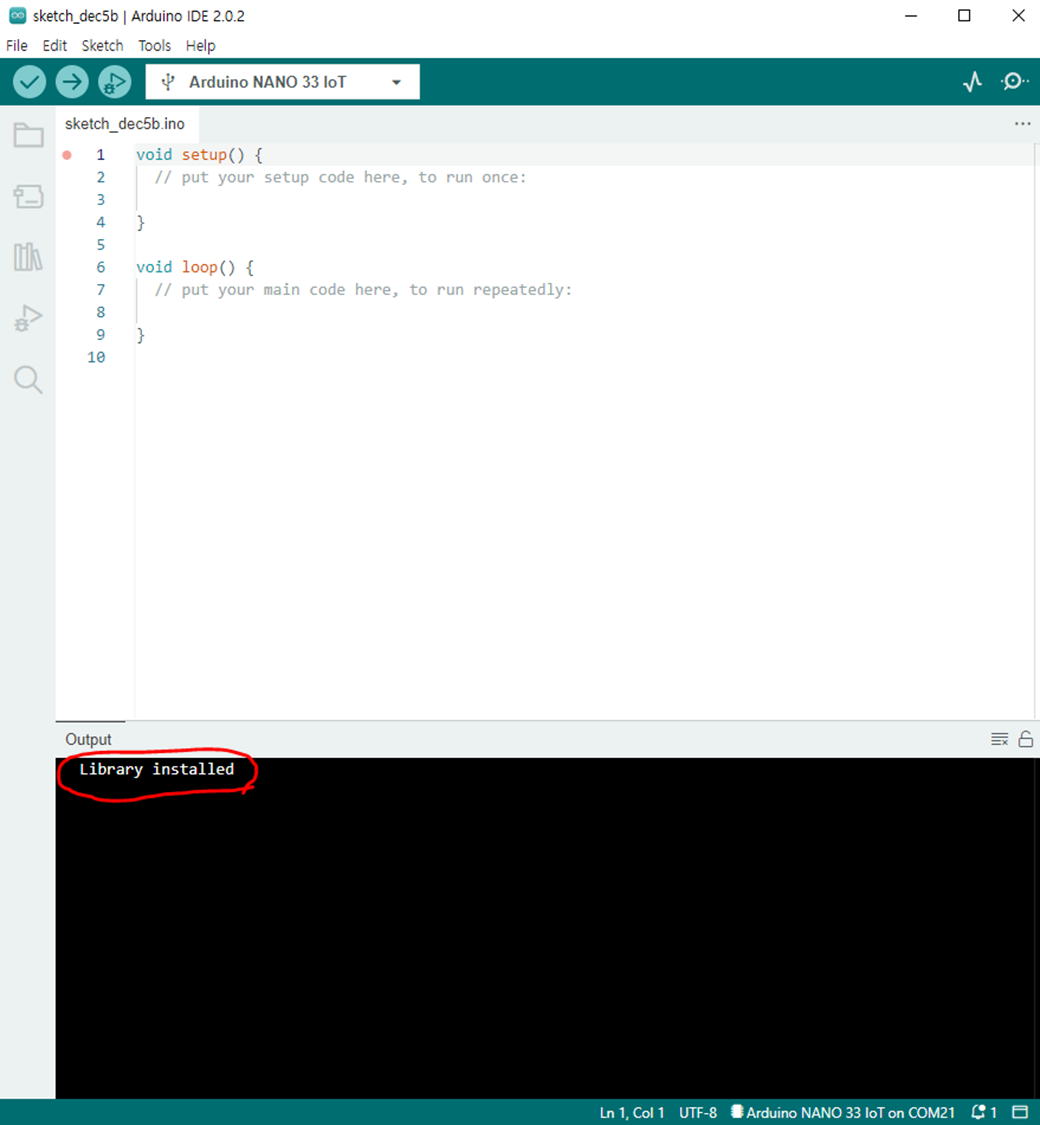 TYPE1SC-main.zip ---> 열기 선택 정상적으로 설치되면 Output 창에 Library installed라는 메시지가 출력됩니다.
