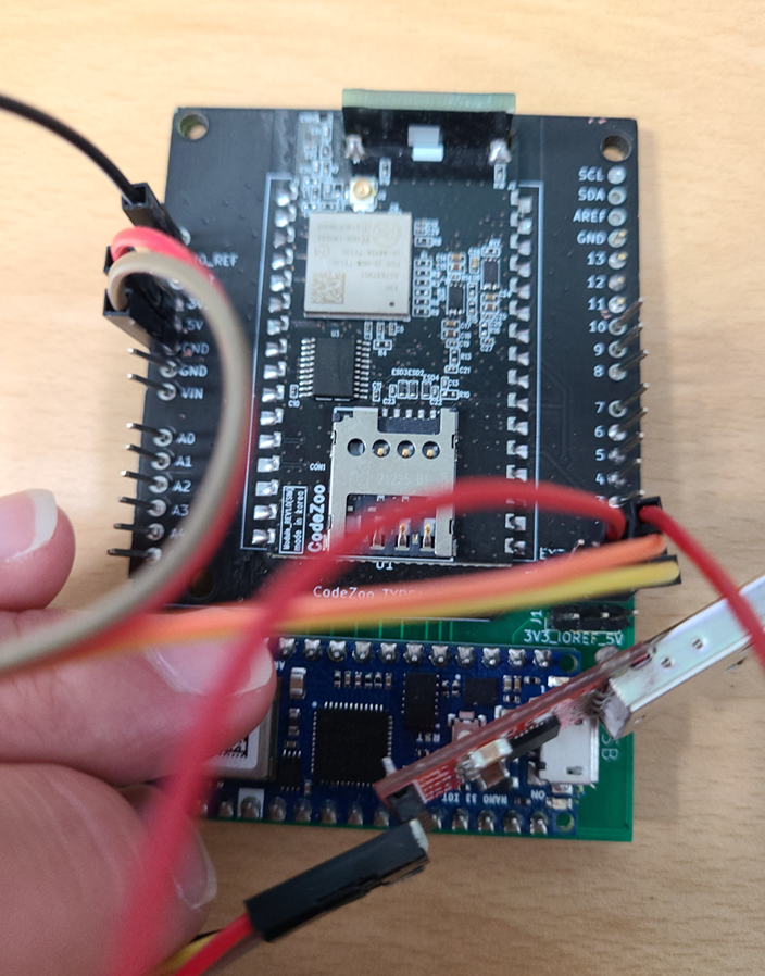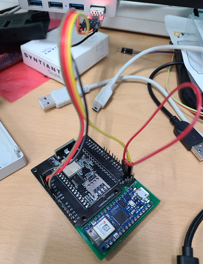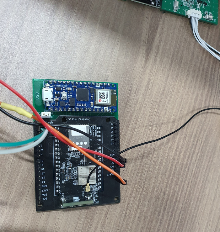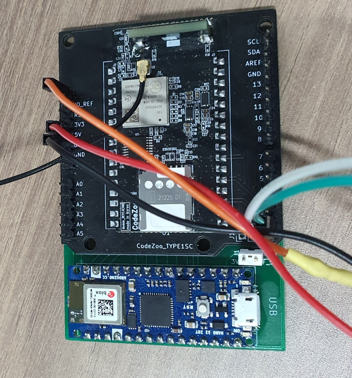 동작되지 않는다고 입고 된 CATM1 내장형 보드셋트 Arduino Nano 33 IoT 보드와 LTE CATM1 내장형 모뎀을 연결한 보드의 형태였는데, 기존에 조립해서 사용하는 다른 보드들과 큰 차이가 있었습니다.