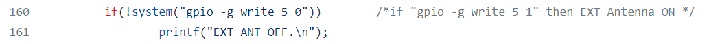 if( !system("gpio -g write 5 1") ) /* EXT Antenna ON */