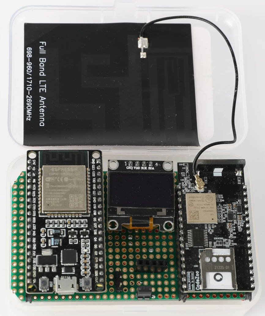 ESP32 보드는 안테나를 작은 케이스에 양면테이프로 부착했습니다.