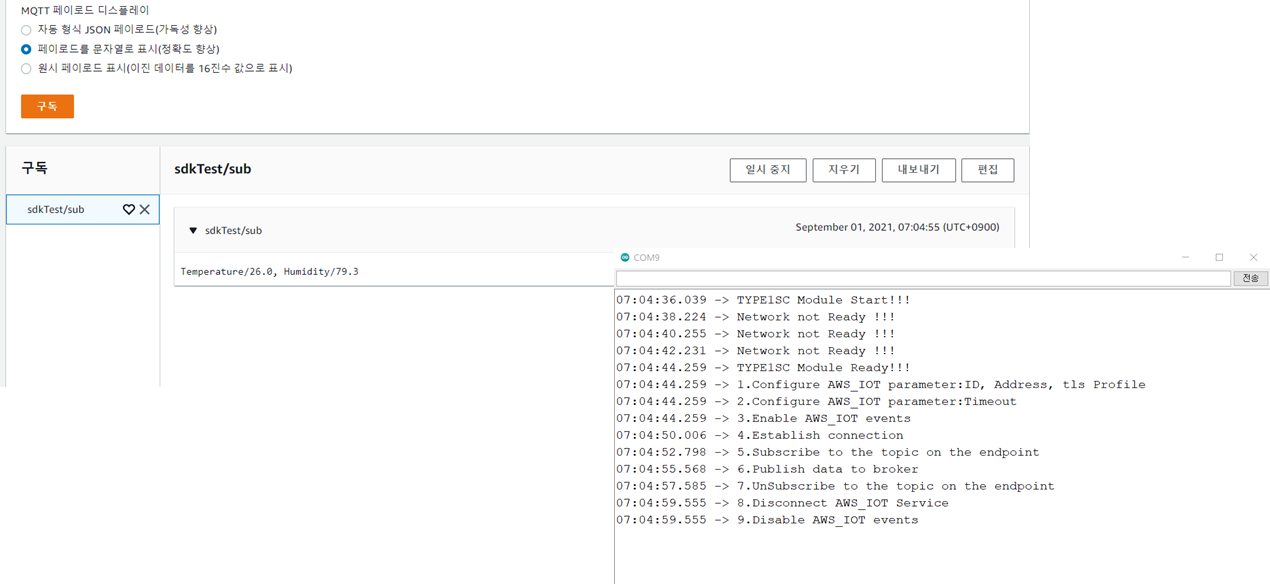 특별히 Type1SC 모듈은 내부에 AWS-IOT 소프트웨어 스택이 내장되어 있어서
