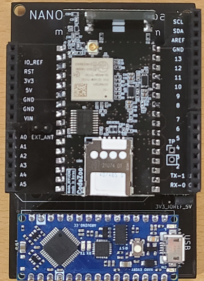 LTE-CATM1 내장형모뎀과 쉴드확장보드, 나노 확장보드 연결 사진 물론, dxf 와 치수 데이터를 제공하기 때문에 직접 필요하신 형태로 PCB 보드 설계하셔도