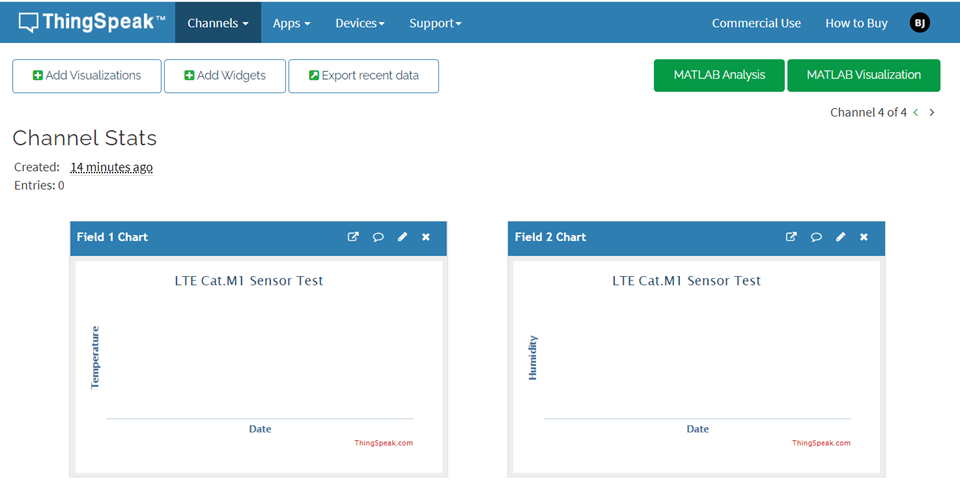 2. HTTP : ThingSpeak.com 계정 생성 후 CATM1으로 온습도 센서 전송하고 Thingspeak.com에서 시각화 하기