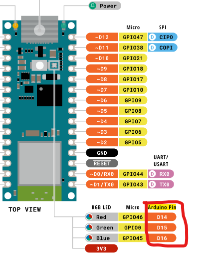 Arduino NANO ESP32 보드의 경우 RGB LED가 보드에 내장되어 있습니다.