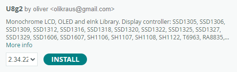 OLED display에 화면을 표시하기 위해 U8g2 Library를 설치했습니다. 다양한 Driver IC를 지원합니다.