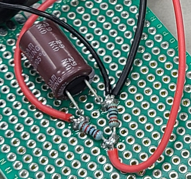 표시되는 전압값을 3.3V ADC에서 처리하기 위해 아래와 같은 회로를 구성하여 실장 했습니다.