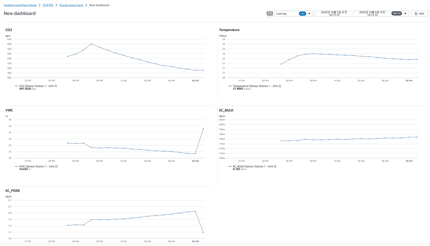 AWS IoT SiteWise Smart Farm DashBoard 2023 한국전자전 무라타전자 부스에 전시할 IoT 스마트팜 전시품을 제작했습니다.