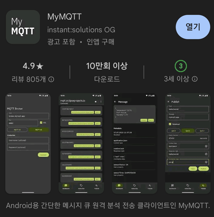 Google PlayStore에서 MyMQTT를 검색해서 설치합니다.