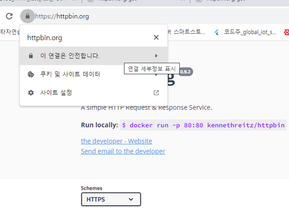 httpbin.org 서버의 HTTPS 기본포트(443)에 접속하도록 주소가 지정되어 있습니다. 다른 서버에 접속하실 경우 해당 정보를 수정하시면 됩니다.