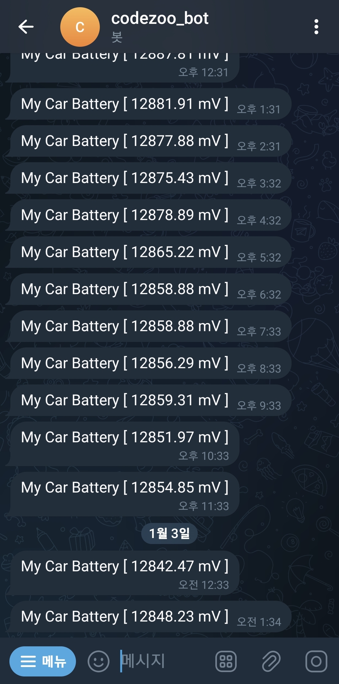자동차 배터리 전압을 텔레그램 메시지로 받기Telegram 2024. 1. 2. 00:59