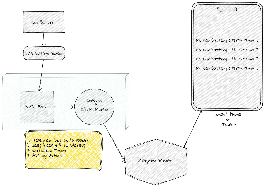 자동차 배터리 전압을 텔레그램 메시지로 받기 - 일주일 테스트 결과 및 슬립모드 전원관리 (2) 2024.01.10 LTE CATM1 모뎀을 Telegram Bot으로 만들기 (0) 2023.12.06