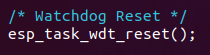 타임아웃이 되기 전에 'esp_task_wdt_reset()' API가 호출되어야 합니다. 따라서 시스템 초기화나 네트워크 연결과 같은 코드 구문에 적절하게 사용해서 무한루프에 빠질 경우 시스템을 재시작할 수 있도록 배치해야 합니다.