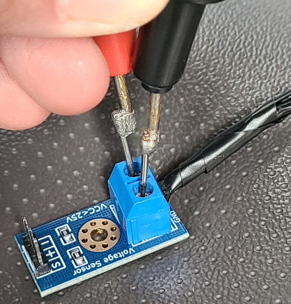 4. 자동차 12V배터리를 전압센서에 연결해서 ESP32 보드 ADC핀에 연결해서 배터리 전압을 읽고 전압값을 가져올 수 있도록 구현했습니다.