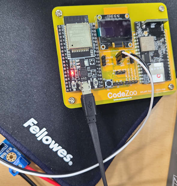 GND, Vcc에는 상시전원을 연결하고 S는 ESP32 IoT보드의 25번핀, - 는 GND에 각각 연결합니다.