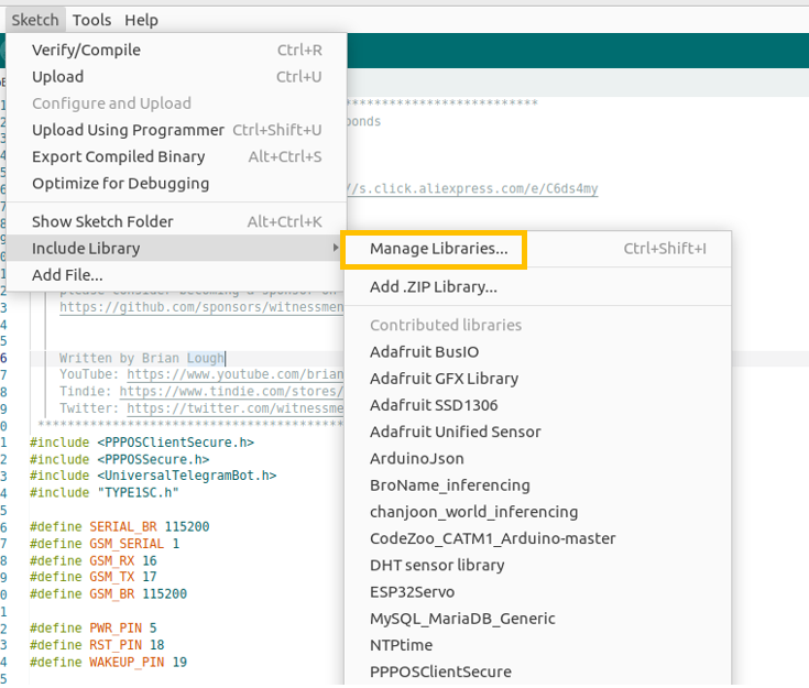 Sketch ⟶ Include Library ⟶ Manage Libraries..