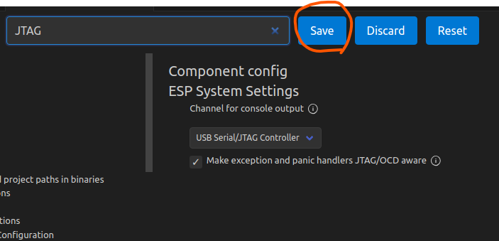 sdkconfig.defaults 내용이 모두 잘 적용된 것을 확인했습니다. 이제 우측 상단의 Save 버튼을 누릅니다.