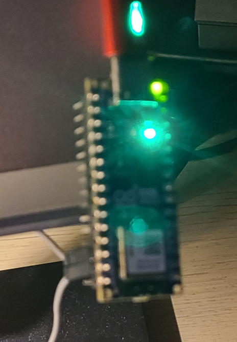8. 업로드 후 왼쪽 상단의 주황색 LED가 깜빡거리는 것을 확인할 수 있습니다.