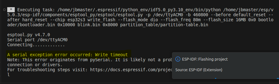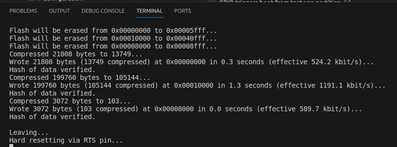 blink example이 아래 영상처럼 잘 동작하는 것을 확인할 수 있습니다."이렇게 한번 동작시킨 이후에는 ESP-IDF에서 부트로더 복구모드 없이 펌웨어 업로드가 가능합니다."