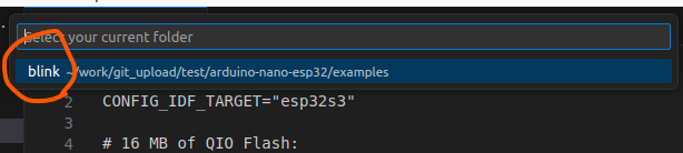 프로젝트를 클론 한 위치로 이동해서 examples → blink를 선택하고 Open 합니다.